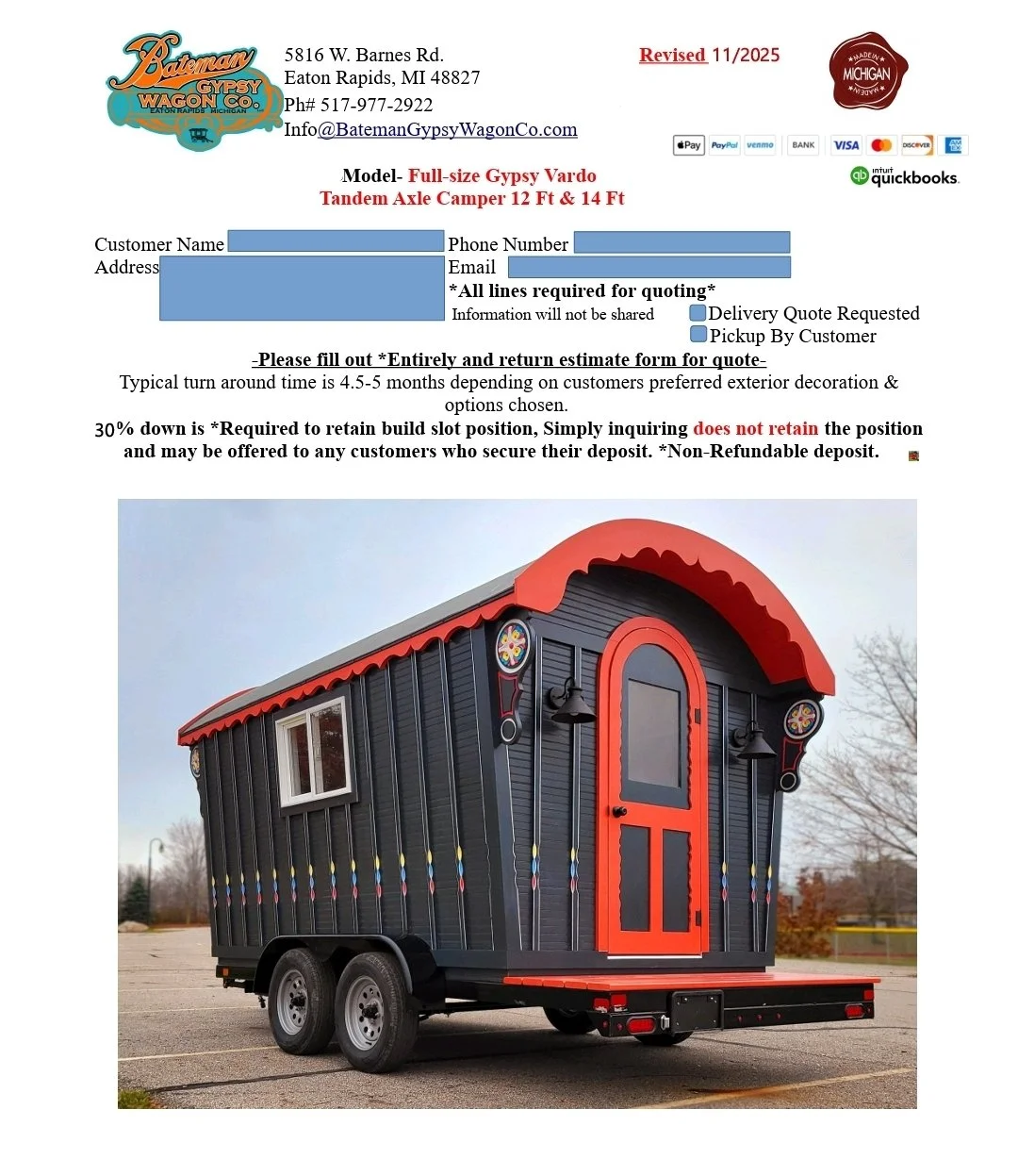 30% down is *Required to retain build slot position, Simply inquiring does not retain the position and may be offered to any customers who secure their deposit.